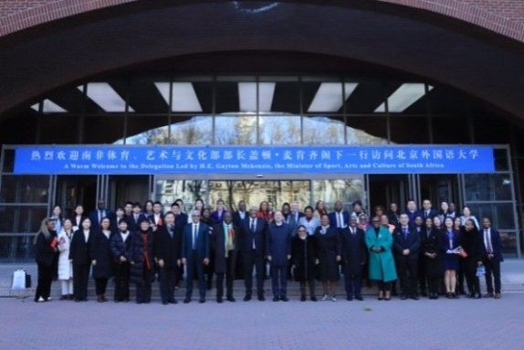 في 3 ديسمبر، قام جايدون ماكنزي وزير الرياضة والفنون والثقافة الجنوب أفريقي بزيارة جامعة الدراسات الأجنبية ببكين على رأس وفد رسمي. واستقبل الوفد جيا ونجيان، رئيس الجامعة ونائب أمين لجنة الحزب بالجامعة، وليو شينلو، عضو باللجنة الدائمة للجنة الحزب بالجامعة ونائب رئيسها. وناقش الجانبان خلال الاجتماع بشأن سبل توسيع التعاون في مجالات تبادل الأفراد والبحوث المشتركة والترجمة المتبادلة للكلاسيكيات والتعاون الفني وغيرها.